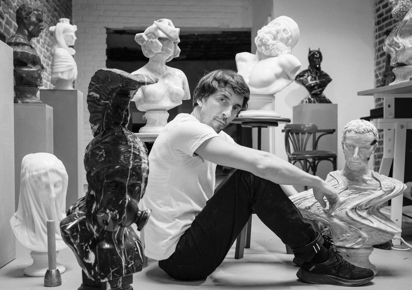 Léo Caillard est un sculpteur singulier qui dialogue avec l'espace-temps à travers l'art. Maîtrisant les techniques classiques les plus raffinées, il sculpte le marbre pour créer un pont sensible entre l'héritage antique et la modernité contemporaine.